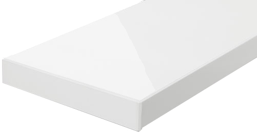 Форма капиноса 90 градусов, две фаски под углом 45 градусов в сочетании с декором Белый глянец придают этим подоконникам дизайн натурального камня.